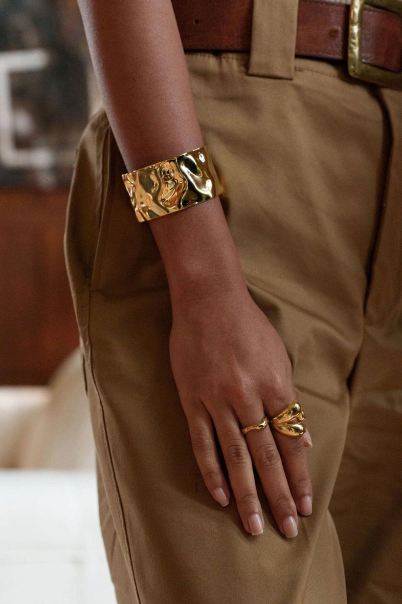 Laissez-vous choquer par l’audace de ce bracelet manchette martelé en acier inoxydable, un véritable chef-d'œuvre de style et de caractère. Avec son design brut et moderne, ce bracelet incarne la puissance et la sophistication.